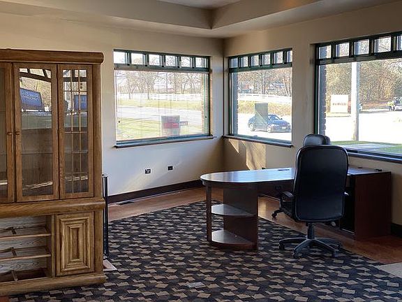 Custom built brick and stone free-standing building on State Route 120! Great location! Incredible quality! Busy highway with a circular drive giving access from Rand and also Glenwood. Excellent parking. Double doors open to this classy office or showroom with tray ceiling w/recessed lighting, quality commercial carpeting bordered by hardwood floor, granite floor entry, great windows for natural light and cherry stained oak trim around the doors for a stately feel. The public restroom reflects this decorating with a beautiful marble bathroom. A circular staircase leads to the finished lower level. This adds a bath with shower, washer/dryer, full oak kitchen and open area with quality carpeting. Lower level has it's own entrance from the parking lot via an open exterior staircase. This area could be anything from office area for support staff, to a private studio apartment. Very nice finishes throughout! Available for Lease at $1,650/month.