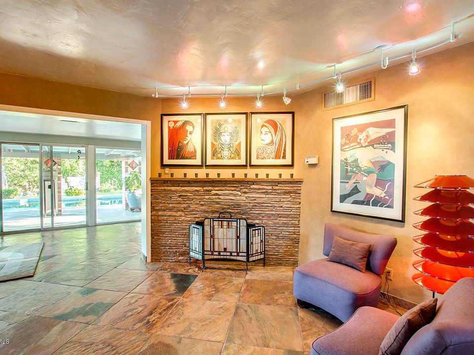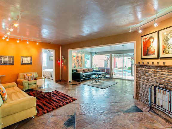 Amazing home in the Encanto Manor Historic District! This home has style, art and charm all rolled into one! Highly upgraded and in impeccable condition to include stone flooring in the main living areas and custom tile work in the kitchen and baths. Walk into the large open dual family room concept with each area boasting its own fireplace. Huge windows with a sliding glass door open this up as an entertainers dream with a gorgeous lush backyard, swimming pool with eye catching tile, soothing waterfall off the covered patio and lots of seating areas create a peaceful haven in the city. The master bedroom has a private exit to a beautiful setting in the back yard. The kitchen has tiled back-splash, granite countertops, and ample cabinet/counter space. Home sits on a private drive The mural in front walkway was created by a local Phoenix Artist. Everything in this home expresses a unique and custom flare with appointed finishes throughout. Workshop/storage shed in back for added storage. The pool and the fountain each have energy efficient pumps. Run, don't walk, this one won't last!