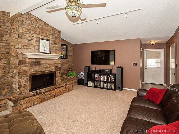 Large open living room with vaulted ceiling and stone fireplace. Updated kitchen with newer appliances and solid surface counter tops. Freshly painted exterior with a nice covered patio and wood deck. Large backyard for entertaining or play. Come and see.
