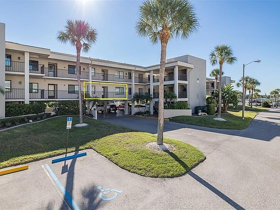 Welcome to your slice of paradise in this stunning 2-bedroom, 2-bath Gulf-front condo offering spectacular sunsets and sunrises, a lighted boardwalk, and tranquil water views right from your 2nd-floor unit with very easy access down the spiral staircase out the back of the home. Featuring a spacious split-bedroom floor plan with 1,025 sq. ft. of living space plus an extra sitting area right over the water. This home blends comfort and coastal charm. Enjoy morning coffee or evening cocktails while overlooking the sparkling Gulf waters — every day feels like a vacation! Located in a beautifully landscaped, gated waterfront community, you’ll enjoy resort-style amenities including: *Heated swimming pools with cabanas *Boat ramp and available dock access (for rent or purchase when available) *Putting green, tennis courts and pickleball *Clubhouse with ping pong, billiards, kitchen, library, and fitness area * 24-hour gatehouse security *RV/boat storage area (available for an additional fee) This unit also includes an assigned parking space conveniently located close to the elevator and a private storage locker under the building. Experience the best of Florida’s waterfront lifestyle — relax, unwind, and discover your place in paradise!