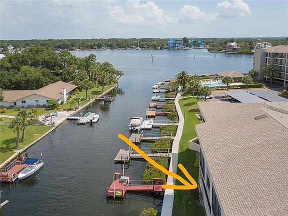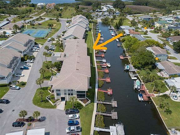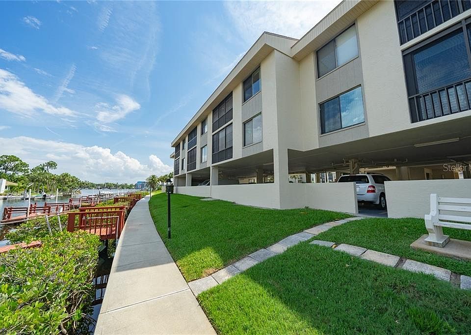 REDUCED!!!Florida Water Front Lifestyle, clean 2 bedroom 2 bath condo, top floor with high ceiling, skylight creating open bright space. Kitchen with cozy breakfast nook and washer/dryer laundry closet. Master bedroom with private bath and huge walk in closet, access to balcony from master bedroom. Beautiful water views from Master Bedroom window. Dining room & living room combo features sliding glass doors with access to a large screened lanai with direct view of the saltwater canal. Tile flooring in kitchen, hall, baths and carpet in other rooms. Newer carpet in master bedroom. Newer windows, hurricanes shutters on lanai. AC and Hot Water Heater installed in 2011. This unit comes with 1 under building parking spot and storage room, community offers 24 Hours manned security guard. Clubhouse with game tables, fitness, library, tennis courts, 2 heated pools, putting green, gas grille, RV boat parking upon availability for extra fee, social club, and yacht club membership for extra fee. Close to shopping, waterfront activities, hospitals, restaurants and beaches. Building equipped with an elevator. Condo comes furnished.