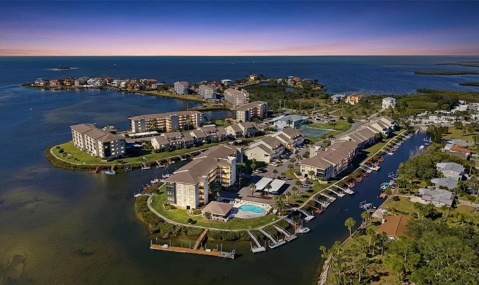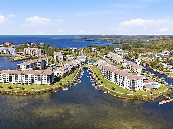 **COMES WITH PRIVATE 8x12 DOCK** Enjoy life on the Gulf of America with your very own private boat dock & Storage unit under the building with a dedicated covered Parking Spot. Add to your short list now! Check out this UPGRADED 2 Bedroom, 2 Bath Condo in the manned gated Sand Pebble Community at Port Richey FL. The pictures tell it all on this beauty that is move-in ready. It offers sweeping waterfront views at the mouth of the Cottee River and is just a short ride to the Gulf. The recent Upgrades & Features include: Barn Doors, Fans, Vinyl Flooring throughout, Cathedral Ceilings, Stainless Steel Appliances, Storage closet, Screened & Covered Patio, Skylight, Granite Counters, walk-in closet, Hurricane-rated windows and door, Blinds, assigned covered parking, elevator access, and more. Community has 2 pools (one is waterfront), a clubhouse with GYM and kitchen, BBQs, pickleball, putting green, fishing pier, and a boardwalk. *Did we mention Washer & Dryer INCLUDED* The HOA Fee at Sand Pebble covers your Internet, cable, exterior maintenance, trash, termite inspection, and insurance. BONUS: RV/Boat Dry Storage with large Shed is available as well for only $20K more, The condo is near all shopping, beaches, places of worship, hospitals, restaurants and more. Service Animal is welcome here! Note: Can be income producing for you as you just need to own for 1year before leading out. Give a call.