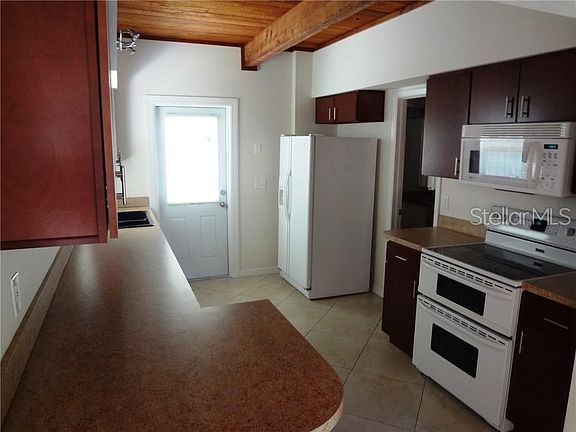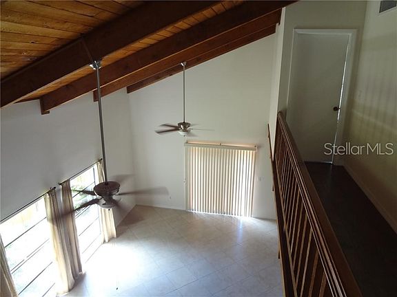 Unique modern design. 2 bedrooms with shared bathroom upstairs (pocket doors). Walk in closet in the rear bedroom. Very large living/dining room with vaulted ceiling. Rustic feel inside with wooden beams/rough sawn cedar, wooden staircase. Beautiful over-size tile flooring in the living/dining area, kitchen and lower floor bedroom. Wood laminate upstairs in bedrooms. 2nd full bath downstairs between kitchen and 3rd bedroom. Large 2 car garage. Double gate to fenced yard great for boat, trailer etc. Ideal location for commute to Tampa and easy access to downtown via newly paved 4th St. N. 5 min. to Gateway Mall with Publix, Target, drugstores, restaurants etc.