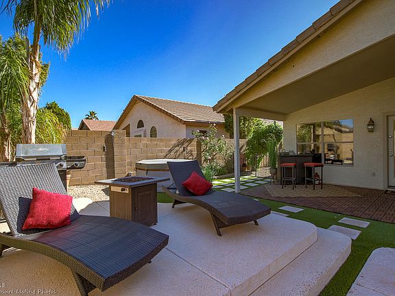 You won't want to miss this single story 4 bedroom 2 bath move in ready home. Highly sought after neighborhood in Gilbert school district with Mesa taxes! Enjoy the low maintenance recently upgraded back yard perfect for entertaining with sparkling pool, above ground spa, turf, pavers and beautiful new wood decking on back patio! Plenty of living space with a formal living room, family room, and formal dining room. Vaulted ceilings with neutral grey color paint throughout making it easy for personal design. Eat in kitchen opens to the family room, center island, pantry, and ample counter space. Master includes a walk in closet, and a spa like bath with garden tub, separate shower, dual sink vanity and private exit to pool.