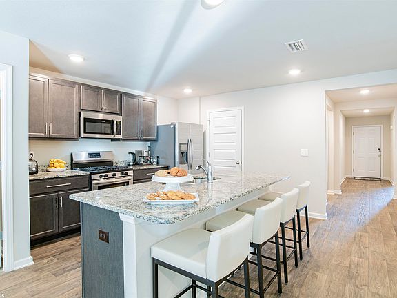 Welcome Home to the heart of Daphne in Winged Foot! As you enter this immaculate home nestled in a quiet cul-de-sac, you walk through the spacious entry to the open concept living, kitchen and dining areas. The gourmet kitchen features an oversized island with granite countertops and is equipped with a Frigidaire appliance suite. The pristine kitchen also offers a generous pantry. Walking from the kitchen to the spacious dining room you can seamlessly flow outside to your entertainment porch with plenty of room to grill and enjoy your family and friends in the private fenced backyard featuring a gorgeous custom flagstone/limestone patio as well. The primary suite includes an expansive bathroom with a soaking tub, walk in shower, double vanity with granite countertop, and large walk-in closet. Easy living continues with the split bedroom plan featuring the additional two bedrooms to the front of the home with a second full bath. This home was built to Gold Fortified Home certification, which may offer a savings to the buyer on their homeowner's insurance. This home conveniently features Smart Home Technology, which includes control panel, doorbell, smartcode lock, two smart light switches, and thermostat all controlled by one app. This home also has a 2-car garage with ample storage, custom remote controlled window treatments, and professional landscaping including limestone edging with black rubber mulch and upgraded fencing. Neighborhood amenities include resort style pool and two stocked fishing ponds. All appliances, including Frigidaire Washer and Dryer convey.