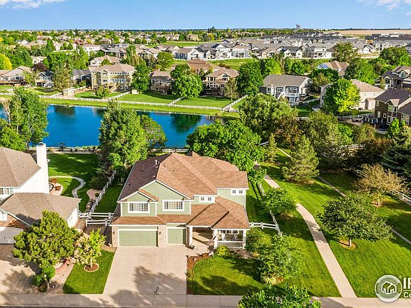 Presenting an elegant and modern masterpiece in the sought-after Country Farms community right in Northern Colorado's vibrant heart. This stunning waterfront property on an oversized lot ensures privacy and panoramic water and open-space views. Surrounded by mature trees and adjacent to greenbelt and walking paths, it offers tranquility and natural beauty.Inside, the open floor plan with high ceilings and large windows floods the home with natural light. Radiant hardwood floors enhance its refined ambiance. The upgraded state-of-the-art kitchen features cityscape cabinetry, granite countertops, and stainless steel appliances. A separate dining room sets the stage for elegant dinner parties.The family room, adorned with a chic gas fireplace, provides a cozy and stylish relaxation area. The residence boasts two master suites, one with vaulted ceilings, pond views, an expansive bathroom, and a spacious walk-in closet. A second suite includes a private bath, while two additional bedrooms share a Jack & Jill bathroom, offering comfort and convenience.Meticulously maintained and updated, the home features a new high-efficiency furnace, AC, and whole-house humidifier (2022), along with a newer water heater for year-round comfort. An oversized three-car garage with built-in shelving and workbench, plus a large unfinished basement, provide extra storage and customization options.Outdoor living spaces are equally inviting, with a spacious yard, southeast-facing back patio, and a charming pergola for morning sun and afternoon shade. The roof, gutters, and downspouts were replaced in 2017 with durable 50-year shingles, and the exterior received a fresh coat of paint, enhancing its curb appeal.