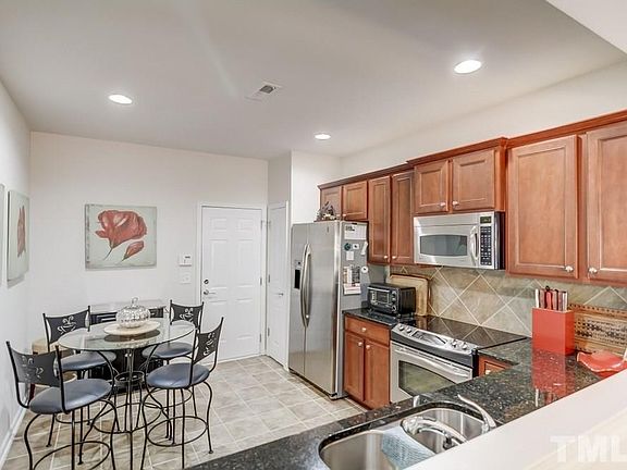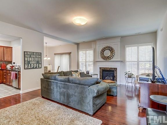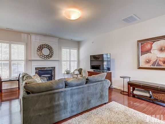 Brick front townhome in fantastic NW Raleigh location. Hardwoods throughout most of 1st floor. Spacious family room features gas log fireplace w/ granite surround & plantation shutters. Formal dining area. Eat-in kitchen includes tile floors, granite tops, s/s appliances & tile backsplash. Large master suite has vaulted ceiling, dual vanities, soaking tub w/ separate tile shower & walk in closet. 2 car garage w/ overhead storage. Oversized patio. Steps to guest parking and pool!