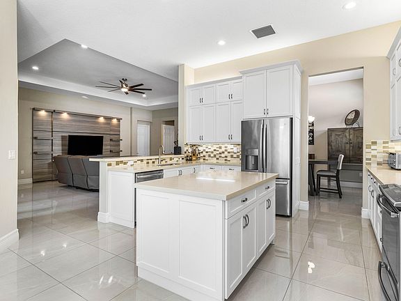 This exceptional and lightly lived-in 3-bedroom, 3.5-bath home plus an office offers over 2,600 sqft of professionally designed living space in the sought-after Julia model. A 3-car garage provides ample storage, while thoughtfully curated interiors elevate the home's elegance.The open-concept living area features custom built-ins and seamlessly connects to a covered outdoor space, offering room for a pool and an expanded screened enclosure. The gourmet kitchen boasts new quartz countertops, a spacious island with ample storage, and designer finishes. Each bedroom has its own private en-suite bathroom, with an additional half bath for guest convenience.Residents enjoy access to a resort-style clubhouse with a heated pool, spa, fitness center, and multiple activity rooms. Additional amenities include billiards, tennis, pickleball, basketball, racquetball, bocce, cabanas, an onsite café, live entertainment, and more.