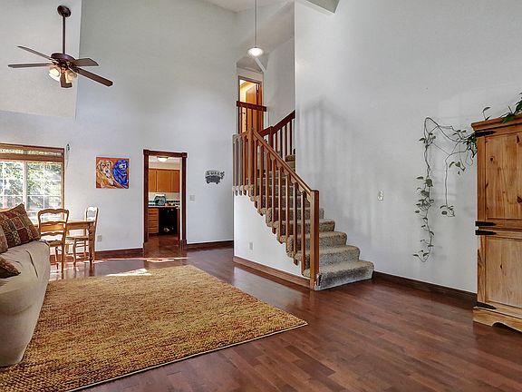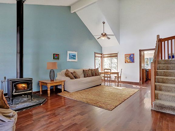 Large corner lot in desirable Durham location. Open floor plan concept with hardwood floors throughout the main level. Vaulted ceilings in the living room and dining with a cozy wood burning stove. Large dining area separate family room with slider leading to the deck and courtyard patio. Updated master bath. Newer gas furnace only(6 months old) Gas cooking and A/C