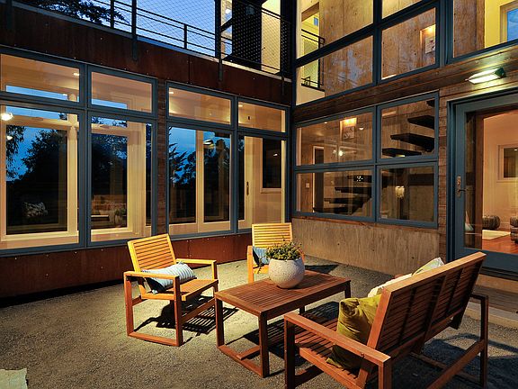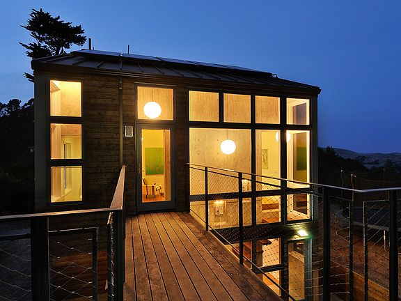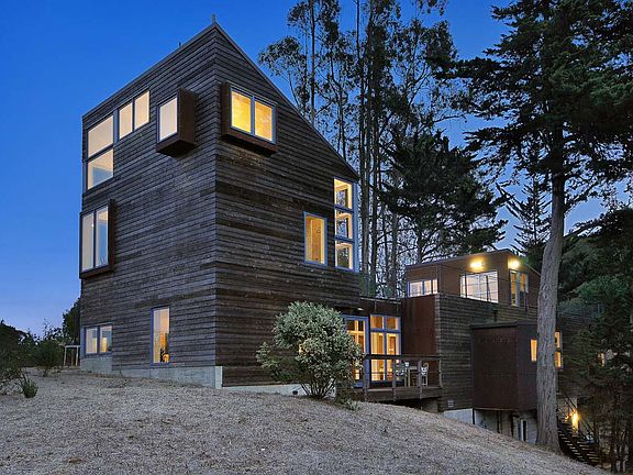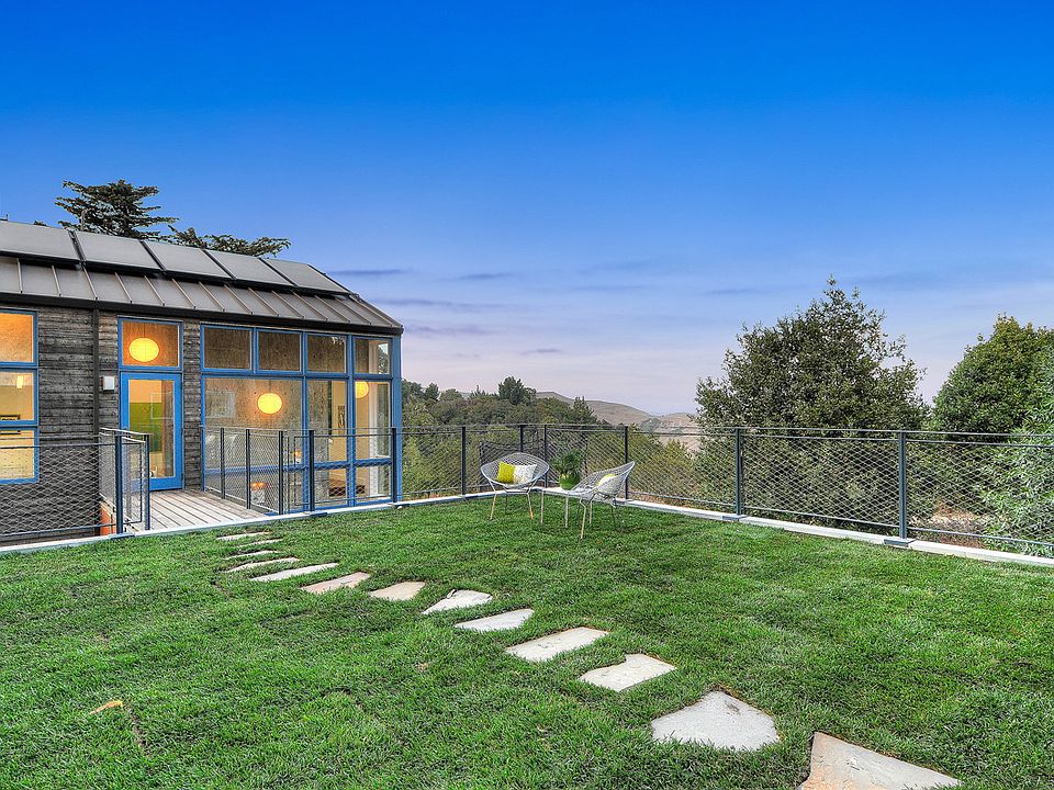 Rustic modern ridge line home w serene views + crafted for max efficiency/sustainability. Design thoughtfully embraces natural environment + features a spacious/open/flexible floor plan, huge living roof deck, dramatic windows + custom closets. Adjacent to East Bay Regional Park land. Hike/Bike out