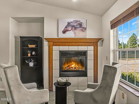 Nestled in a tranquil and picturesque corner of Flagstaff, this expansive 2.5-acre estate offers the perfect place to call home. The open floor plan features a spacious kitchen with ample counter space. Built to embrace Flagstaff's four seasons, this estate allows you to enjoy year-round comfort and leisure. During the colder months, cozy up next to the inviting fireplace with a warm drink, while in the warmer months, you can soak in the fresh mountain air and cool breezes from the covered patio. Enjoy large windows that flood the space with natural light and frame stunning views of the surrounding landscape throughout the home. The well-landscaped front and backyard add to the property's curb appeal, highlighting mature trees and colorful blooms. Move in ready!