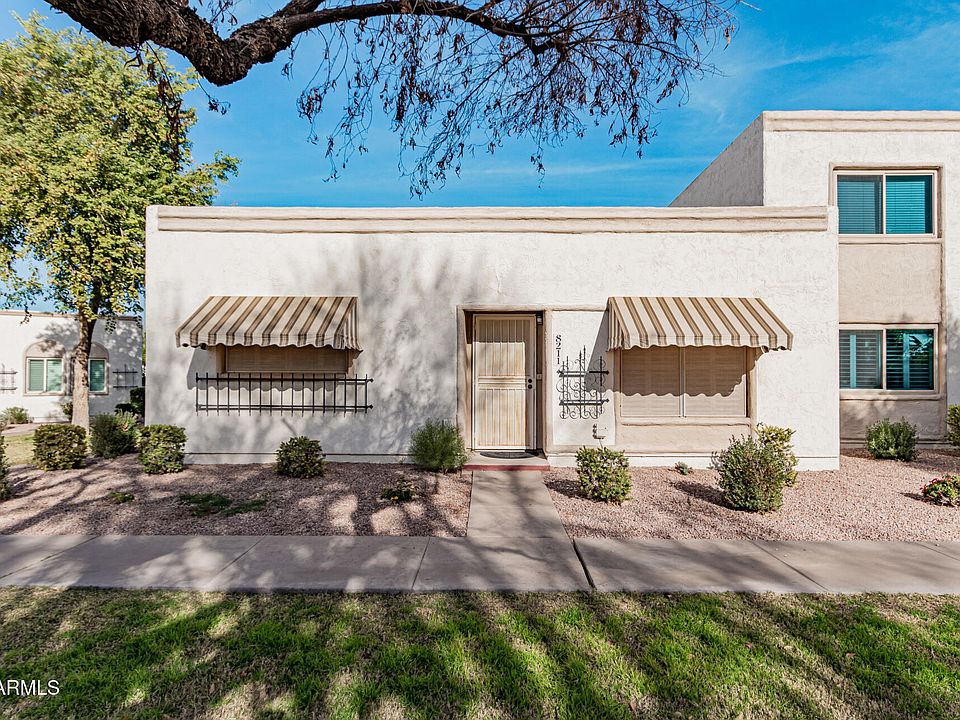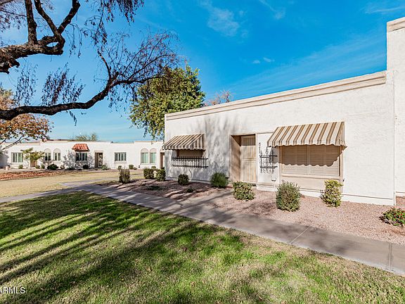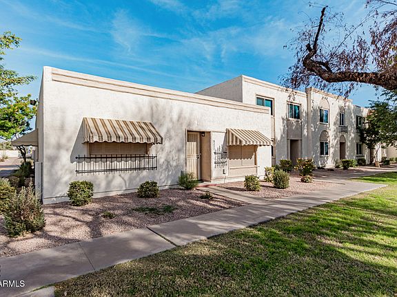 Walk to Old Town Scottsdale from this 3-bedroom townhome in Château de Vie! The living room features a soothing palette, classic plantation shutters, and durable tile flooring for easy upkeep. The eat-in kitchen comes with tile counters, ample cabinetry, stainless steel appliances, a pantry, and a peninsula with a breakfast bar for casual meals. Have a good night's sleep in the main bedroom, which includes cozy carpeting and a private bathroom for added comfort. The covered patio, with its cool stone tile flooring and convenient storage, invites you to relax and enjoy refreshing drinks outdoors. Enjoy the convenience of being close to bus stops, Chapparal Park, restaurants, schools, and diverse shopping options. This value won't disappoint!