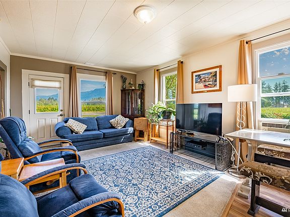 First time on the market! Sweet, super clean farmhouse on 9 acres located minutes to downtown Everson with impressive views of Sumas Mtn. Tucked in the middle of acres of farmland -privacy abounds. Freshly painted exterior. The home was updated in 2018 with double paned windows, vinyl flooring & a new bathroom. Many windows bring in the outside beautiful vistas. Brand new 4 bedroom septic means there is room to expand! Home sits on 1 acre with the other 8 acres leased to local farmer for crops. There is also a detached 1 car garage with a work area, huge barn with electricity for all your toys/hobbies and a lawn equipment shed (could be a chicken coop). Beautiful fruit trees. Level property with loads of space to roam. Come on home!