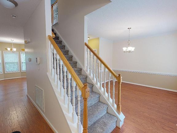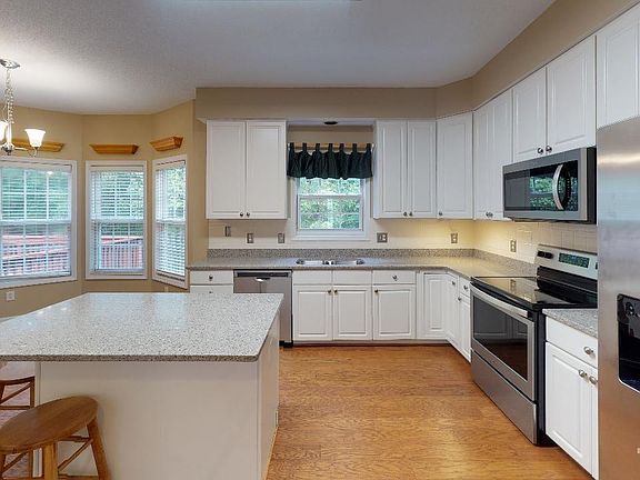 Great North Raleigh location. 4Bedrooms, 2.5 bathrooms move in ready under $300K. The interior has been painted, new stainless steel appliances in the kitchen including the refrigerator. New Silestone quartz countertops. New carpet (stairs and second floor, and family room)with Tempur-Pedic padding. Nice open floor plan. The lot backs up to woods and stream. Nice privacy on the deck. Walk in crawlspace for extra storage.Rocking chair front porch. Extra wide driveway.