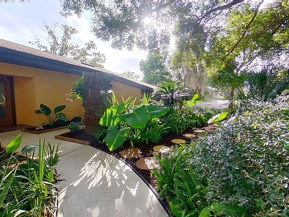 Active With Contract. This superb home is a must see and absolutely beautiful. Located in the quiet community of River Country. This community holds, a wonderful park with a calming lake, tennis and basketball courts. Mature tropical landscaping keeps the home private from the road and leads you all the way up to the front entrance. The a/c was installed in 2020 giving you one less thing to worry about. The sprinkler system is on an irrigation well. Inside has been fully updated to fit anyone's liking. A perfect mixture of ceramic tile and wood flooring flows through the home. A great open living area greets you walking through the elegant double doors. A cathedral ceiling soars above, and the fireplace creates warmth and appeal. The kitchen is from a page in a magazine. Stainless steel appliances including a warmer where installed in 2019, granite counter tops, wonderful glass front cabinets, updated light fixtures and a decorative backsplash to bring everything together. The breakfast nook has great views of the backyard and holds a dry bar area. The bonus Florida room immediately brings the feeling of relaxation. Slider doors run along the back wall filling the room with natural light and the electric fireplace sets the scene for classy ambience. An added feature in the Florida room is the second kitchen. This area holds a refrigerator, cooler, sink, microwave and smooth top cooking space. All the bedrooms hold great space and both bathrooms have updated dual vanities. The pool pump was replaced in 2020, there is an outdoor shower
