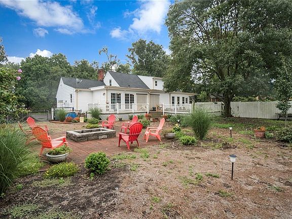 GORGEOUS Cape Cod tucked off the road on a Circular Drive! Park Like Setting - ENTERTAINER'S DREAM. 2800+ sqft with +800 sqft of Decking and Patio space. Featuring 4 Bedrooms and 2 Full Baths - 2 bedrooms on the 1st level. UPDATED White Kitchen with Custom Spanish Tile and a FARM SINK, Finished Sunroom, CONVERTED Garage available as a BONUS Rec Room. Updated Painting and Lighting in Bedrooms! HUGE FAMILY ROOM with Sliding Doors to the Deck. Fenced rear yard with OVERSIZED STORAGE BUILDING. Quality Built home with Hardwoods in the Formal Rooms and Loads of trim work throughout. Perfect home for those with an Extended family, needing a Mother In Law Suite possibility, Work from Home. NEW 30 YEAR ROOF.