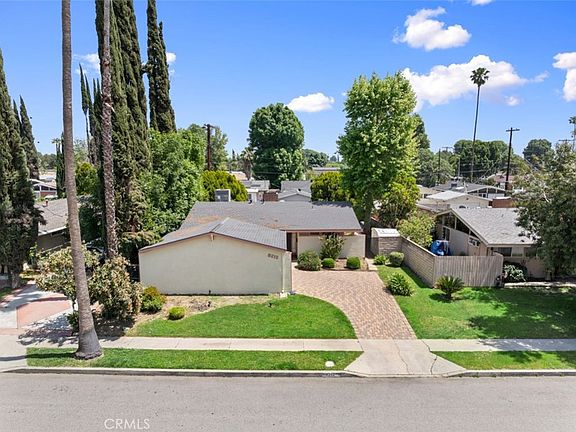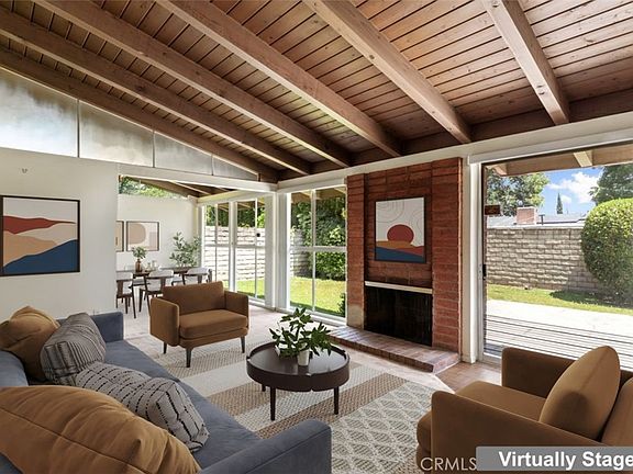 First time on market in 42 years! Single story 4 Bedroom + 2 Bath mid-century modern home tucked away on a quiet cul-de-sac street in desirable Northridge-adjacent location! Interior features expansive open beam tongue & groove wood ceilings and clerestory windows that fill the home with spacious volume and natural light. Costly upgrades include re-roofing, roof-pack central heating & air-conditioning unit, recent interior & exterior paint, updated Baths, some copper re-plumbing and a masonry pavers driveway curving into the side entry to the 2 car Garage. Functional & flexible floor plan offers Primary Bedroom & Bath privately located off Entry, yet close to secondary Bedrooms grouped nearby around the 2nd Bath. Bedroom 4 with spacious closet is currently a Den that's partially open to Living Room, yet could easily be enclosed as a separate Bedroom. Kitschy 1950s vintage Kitchen with wood cabinetry & tile counters serves as the hub of the home and features an expansive family sized breakfast bar and a south-facing orientation with clerestory windows that splash the room with sunlight. Kitchen-adjacent Laundry area has a door that conveniently exits to the side yard. This central Valley location is close to both 405 & 101 freeways, major shopping, parks, schools and Northridge Hospital Medical Center is just blocks away.