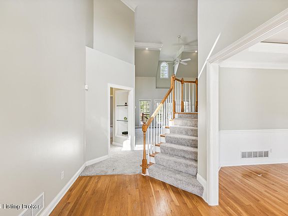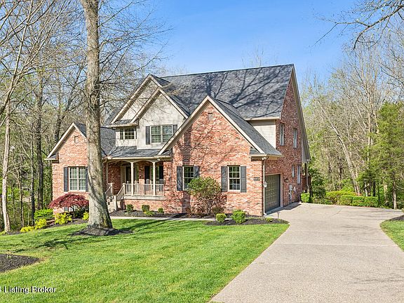 June 2024 - Two new HVAC units installed! Stunning spacious two-story home in Chapel View Estates situated on a gorgeous cul-de-sac wooded lot with views out every window. This home has curb appeal galore and its setting is truly magical. The front walk leads to a lovely front porch perfect for rocking chairs or a porch swing. The 2-story foyer has loads of light and opens to a vaulted great room with a 2-sided gas fireplace, mantel, tile hearth and a wall of windows. The front of the house features a formal dining room with a large double window, trey ceiling and ambient lighting. There is also a room that could be used as a formal living room or office space. The large eat-in kitchen features a fireplace, island with cooktop and breakfast bar, ample cabinetry and countertop space and doors to a covered porch on the rear deck to enjoy breakfast, coffee outdoors or just take in the natural surroundings. The laundry room is conveniently located off the kitchen and the garage is nearby. On the other side of the house is a half bath for guests. The spacious owner's suite is situated in the back corner of the house and has an impressive trey ceiling and gorgeous wooded views. The large primary bath features a step-in-shower, jetted tub, dual vanities, private commode, and huge walk-in closet. The staircase to the second floor overlooks the great room and leads to 3 bedrooms with 2 full bathrooms. The rear bedroom has an ensuite bath with tub/shower enclosure. The front two bedrooms are connected by a shared bathroom with private commode and tub/shower enclosure. The finished lower level is huge and features a bedroom, full bath, kitchen area, family room with fireplace, game area, two storage areas and a lower deck to take in the outdoors. Updates include new carpet in basement (May 2024), new roof shingles and gutters (August 2023) and new paint and carpet on the main level and new carpet throughout the upstairs. The home has two HVAC systems, a central vac and a hard-wired alarm system. The septic has been recently serviced (April 2024) and is in good working order. Chapel View Estates has only 47 homesites and this is one of the best. This approximately 1-acre property features a level, treed front yard and a fall away rear yard that lives like a nature preserve with its majestic trees and gently flowing creek. A bald eagle has even been spotted in the trees. The Chapel View Estates neighborhood also offers seasonal activities, community trails and a fishing lake. Come see this special and spacious home tucked into the back of a lovely neighborhood in a beautiful part of Kentucky's Oldham County.