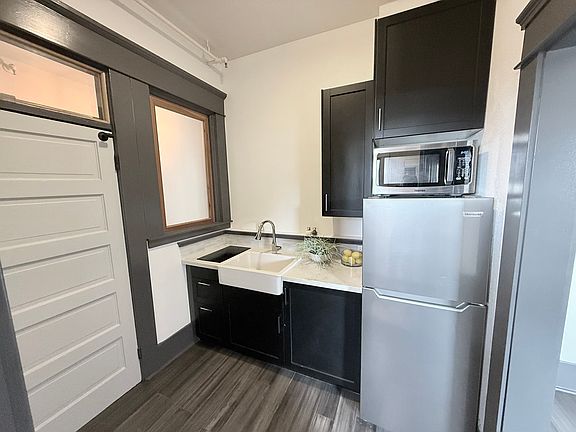 Charming one-bedroom / one-bath apartment in Kenton. (8212 N DENVER AVE - UNIT 8) Best suited for someone seeking a minimalist, low-maintenance space. Compact floor plan with limited storage. Ideal for a quiet, responsible tenant looking for efficient living in a peaceful building. Please note: unit is not designed for multiple occupants. Be surrounded by history and design elements inspired by the beauty of the Pacific Northwest, with beautiful high ceilings, wood flooring, and clear fir and tile accents throughout. Paul Co-Live is located in historic Kenton, a vibrant and growing neighborhood in the Portland Metro area. In addition to all that Portland and the rest of Oregon have to offer, you'll find restaurants, shops, bars, Kenton Park, a seasonal farmers market, annual street fair, and a light rail station - all about 1 block from your front door. CONVENIENCES INCLUDED WITH YOUR RENT: - FREE UTILITIES...... water, electric, garbage are all included - LOW MOVE IN COST ..$800 security deposit and $35 app fee - FLEXIBLE LEASE .flexible 6 or 12 month lease - your choice - FREE WASHER/DRYER......free use of large washer and gas/steam dryer (on same floor - no stairs!) - FREE WI-FI......no need to pay for your own service - it's provided - INDOOR GRILL COURT - direct access from your unit to a the indoor grill court. Grill a burger year round! - SUN DECK......furnished shared deck for sun fun - SECURE......controlled code access building entry and common area security camera coverage DETAILS: PARKING - street, no permit required SF: 400 PETS - cat ok with $25 additional rent SMOKING - non-smoking property TERMS - 6 or 12 months MOVE IN - $800 deposit, / $35 screening ACCESSIBLE UNITS: no RENTAL CRITERIA: upon request SEE DESCRIPTION