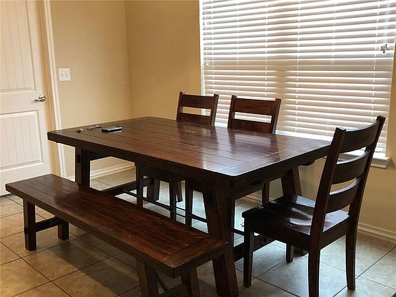 For Lease, prefer minimum 1 year. 4 bed, 3 bath and 2 car garage with storm shelter. The upstairs bedroom has full bath and could also be used as a media or game room. Large living room with open floor plan and kitchen with pantry. Master and 2 bedrooms with Jack and Jill bath on the first level. Full window treatments and comes with refrigerator, washer and dryer if needed. There is also an oversized 20x20 covered patio and large fenced back yard. Available immediately. Some pets allowed, deposit required.