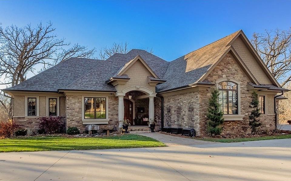 Private Executive retreat set on 2.6 acres with water views. Close to everything! Sophistication and attention to detail greet you in this 6000+ sq ft haven. Designed for entertaining indoors & out. Superb condition with warm/painted finishes. Open chef's kitchen, light filled living area, spacious DR, 3 season room w/stone FP. Main floor office. Second level suite (above garages), complete w/ full bath. Master suite w/bath, dbl vanity, dual head shower, walk-in closet & adjoining laundry. 2nd suite w/bath is perfect for guests. Mudroom & pantry just off the oversized 4 car heated garage. Walkout LL w/full wet bar, dishwasher/microwave/fridge looks over pool table area, speakeasy feels in your wine/game room, workout/gaming space plus full theater room covers everyone's interests! 4th bedroom is en suite w/bath, 5th bedroom w/huge closet and full bath, plus 1/2 bath for guests. Come home to this peaceful, gorgeous, wooded acreage!