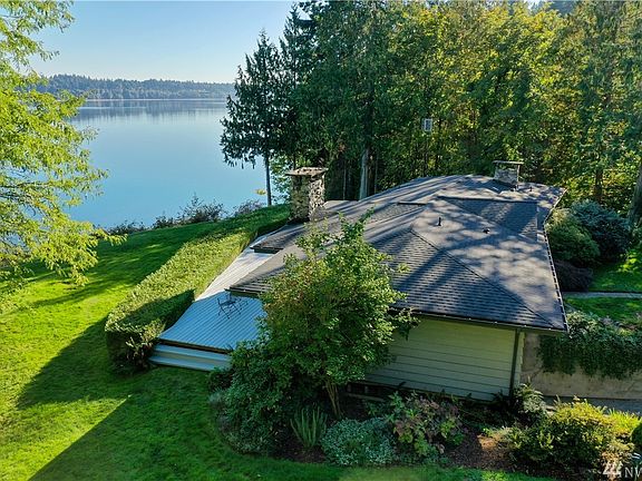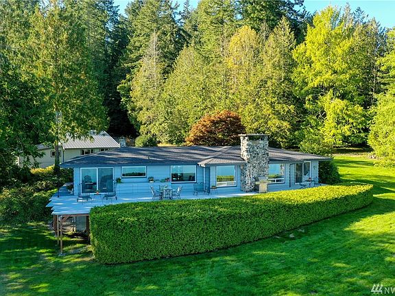 2 dwelling estate, million dollar view, 183 ft high bank waterfront. This private oasis includes easy access to the beach, waterfront deck, main house plus guest house/ADU w/3,079 finished sq ft, newer heat pump ac, central vacuums, newer roofs, updated septic, updated flooring, gorgeous landscaping, & hummingbirds on 2+ acres. Single level home w/heated basement w/1,118 sq ft unfinished area at full headroom height, potential separate entrance. Lots of options! Too much to list. Must see.