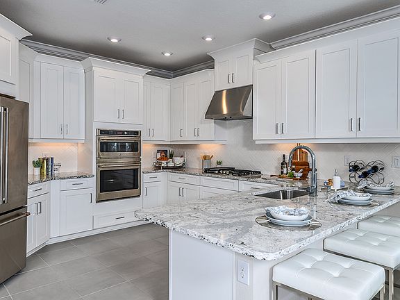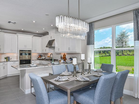 This model home purchase includes our Model Leaseback Program.* This program is perfect for buyers who want to purchase now but aren't ready to move. Purchase the model today. Lease your model home back to us for an agreed-upon amount of time. When the lease is up, you move in! Model leaseback terms vary by model home. Please see a Community Sales Manager for additional details. Restrictions may apply. The spacious Anastasia floor plan offers a unique layout that's ideal for Florida living. The foyer angles off the front porch, with access to the laundry room and a half bathroom on the right. Straight ahead, the designer kitchen offers pantry and counter space with the sink square to the open dining room and gathering room area. The main level also includes a study with French doors. Step outside to the lanai, accessible from the gathering room. The owner's retreat is tucked away off the gathering room. A walk-in closet provides plenty of wardrobe space. The owner's bath features a water closet for privacy and two sink vanities separated by an elegant over-sized shower. Upstairs you'll find a game room with three additional bedrooms, one with a private full bath and the remaining two conveniently located near another full bath. Structural options added at 8212 Summer Night Road include: tray ceiling, gourmet kitchen, game room, study with double doors, 8' interior doors, 5 - 1/4" baseboards, and pocket sliding glass door at gathering room. *Model Home Prices exclude furni