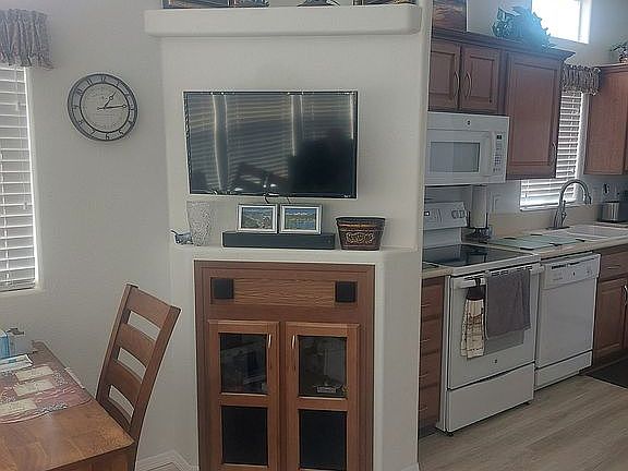 Meticulously maintained park model with addition in a very nice 55-and-older retirement community just outside of Show Low and Taylor, AZ. This is a great place to escape the summer heat at 6,200 elevation on the Mogollon Rim. Park model was installed on cement foundation in 2018 and well-built addition in 2020. Easy-to-clean, durable laminate floors throughout, two full bathrooms with showers, laundry room with nice stacked washer and dryer inside the home, large shop with lots of storage. Galley kitchen with newer, upgraded Corian counter tops. Large separate dining and living rooms with butler pantry. Lots of storage throughout makes this unit feel larger. Golf cart is negotiable. Furniture is included, except for antiques. One of the cleanest, most updated, newest, and roomiest units in Juniper Ridge Resort, Lot 415. Juniper Ridge Resort offers a variety of amenities, including an 18-hole executive golf course, fishing lakes and ponds, free access to White Mountain Lake (1/4 mile), clubs, pickleball and tennis sports, card games, crafts, weekly dances (summer), large locker rooms, saunas (steam and dry) a large pool/spa, beauty services, and fitness rooms.