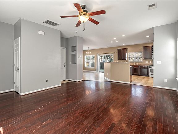 Step into your exquisite abode, where southern charm greets you at the door with stunning rock columns. This home boasts a spacious open floor plan, perfect for hosting gatherings with ample room for family and guests. As you enter, be captivated by the warmth of the wood flooring in the expansive family room, seamlessly flowing into a grand gourmet kitchen and dining area. Outside, indulge in the splendor of the outdoor living space, enveloped by a private backyard adorned with lush trees. The kitchen serves as the heart of the home, beckoning everyone with its stainless steel appliances, elegant 42'' dark cabinets, granite countertops, and abundant recessed lighting. An oversized island offers both storage and seating, creating a focal point for socializing.Upstairs, the mastersuite awaits, offering generous space for a cozy seating area. The ensuite master bathroom features a separate shower, luxurious soaker tub, and dual sink vanity, while the large walk-in closet caters to all your storage needs. Two additional bedrooms share a well-appointed hall bathroom with a single sink vanity and shower/tub combination. This home is not only a true gem but also conveniently located just 15 minutes from downtown, 10 minutes from Tanger Outlet, 5 minutes from Northwoods Mall, and a mere 10 minutes from the airport. Enjoy easy access to shopping, dining, entertainment, and transportation hubs. If you seek a home designed for both comfort and style, look no further - this is the one for you. Additionally, it features a new water heater, an extended back porch, and a fenced-in yard, adding to the allure and functionality of this remarkable property.