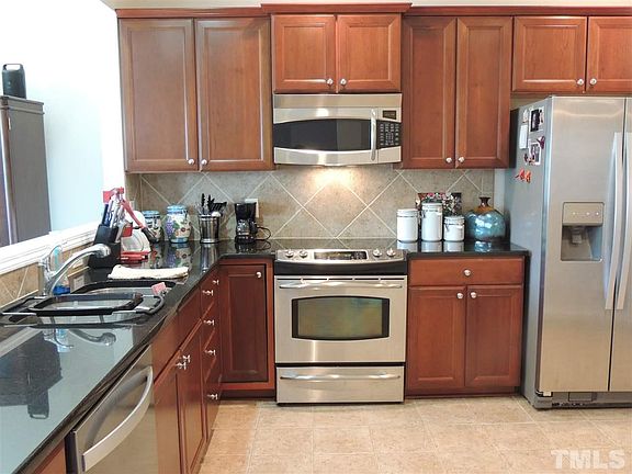 Beautiful Townhome in Glenwood Crossing! Open& function floor plan, granite counter,stainless appliances & abundant counter space/cabinets in kitchen,hardwood on 1st floor,tile floor in kitchen, large living room has gas fireplace &open to kitchen & dining area. 3 spacious bedrooms upstairs w/ vault ceiling in master suite and separate shower.Private back yard backs up to trees, 2 garages,patio,laundry room on 2nd floor. Great location,schools, close to shopping, RTP &highways. Pro clean,walk to pool