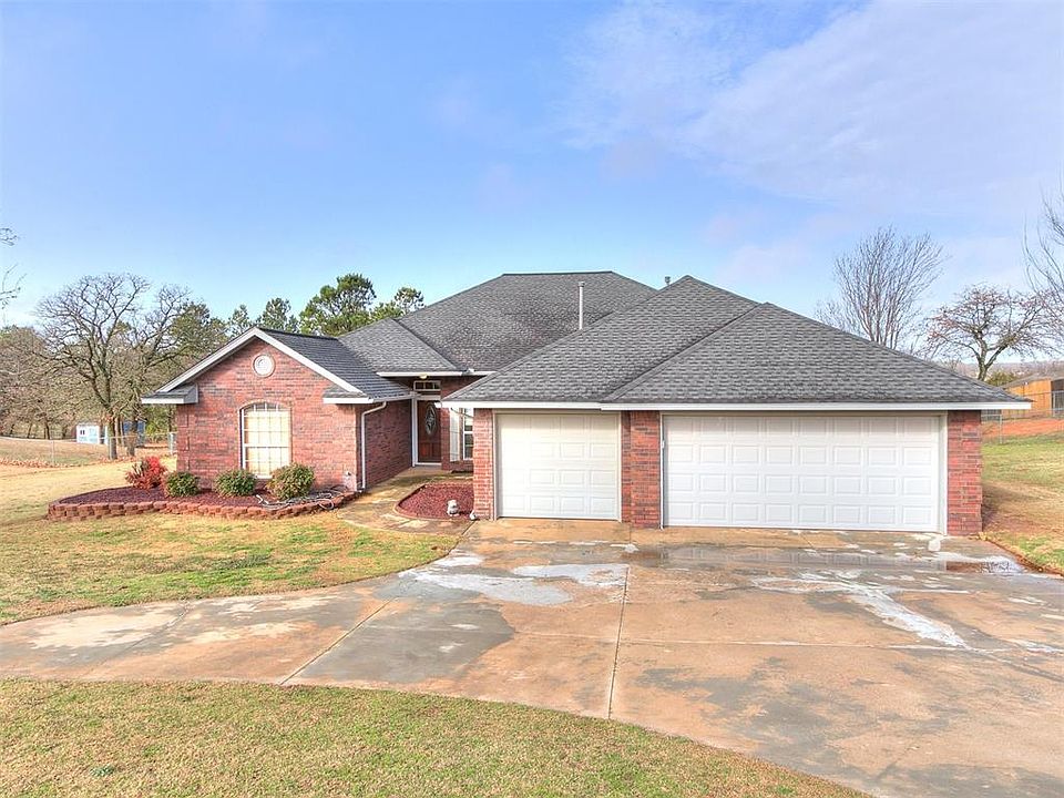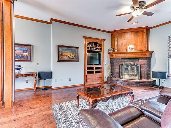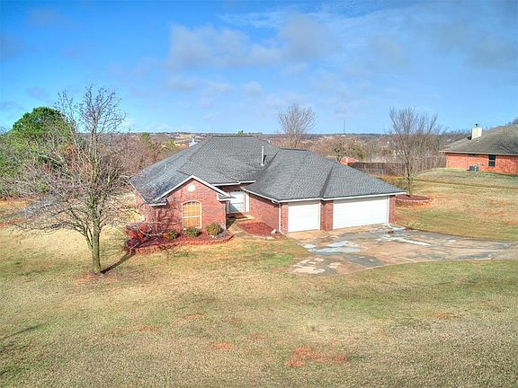 Beautiful neighborhood with rolling terrain * 1 Acre lot and backyard is fully fenced * NO HOA so Shops are allowed! * 4 Bedrooms * Spacious Living with Wood Burning Fireplace with Blower, Wood Plank Floors, Crown Molding and Ceiling Fan * Spacious Kitchen with Breakfast Bar, Tile Floors, Smooth Top Cooktop and Crown Molding * Optional Formal Dining or Study features Wood Floors and Crown Molding * Master Suite has Wood Plank Floors, Double Vanities, Whirlpool Tub, Separate Shower, Large Walk-in Closet and French Doors to it's own Patio * 3 Spare Bedrooms are on the opposite side of the house and the Bathroom has Double Vanities and Tub/Shower * Oversize Laundry Room with Utility Sink, Hanging Sink and Lots of Cabinets * Conveniently located with easy interstate access * Choctaw Schools *