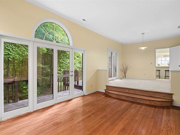 This gem was formerly an architect's personal home. Nestled in a wooded cul de sac, this unique 4 bed/2.5 bath home has character! The generous foyer opens to a beautiful view out the expansive GR windows/door to the deck. Step down into the GR and then up to the dining room (which would make a great home office or play room). Large island, stainless steel appliances & a step-in pantry make this kitchen a cook's dream! Step down from the kitchen into the cozy hearth room that also has a sliding door to the deck. All 4 bedrooms are located on the other side of the house. There is an extra cedar closet located behind the master bedroom door & shower behind the master bathroom door! Utility sink in laundry room. All appliances stay! Side yard has room to play or go explore the woods and creek. Community pool/tennis.