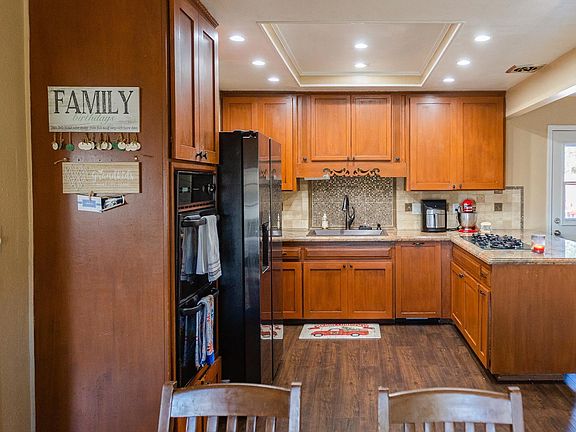 This warm, welcoming, and one of kind home is perfect for you. It's located in a beautiful neighborhood that's centrally located next to parks, schools, shopping, and freeways. It has 4 livable bedrooms with a huge main suite. The large master suite has a fireplace and reading/relaxing area. There is laminate floors throughout and porcelain tile in the bathrooms. The kitchen has granite counter tops, custom cabinetry, a built in gas burner range, dual ovens, dishwasher, and a newer fridge. The open kitchen and connected dining room offer a wonderful place to enjoy with family and friends. The windows have been updated - dual pain. The garage is great for parking, storage or creating another work space/ gym. Come see today!