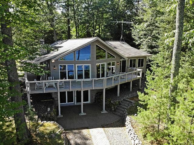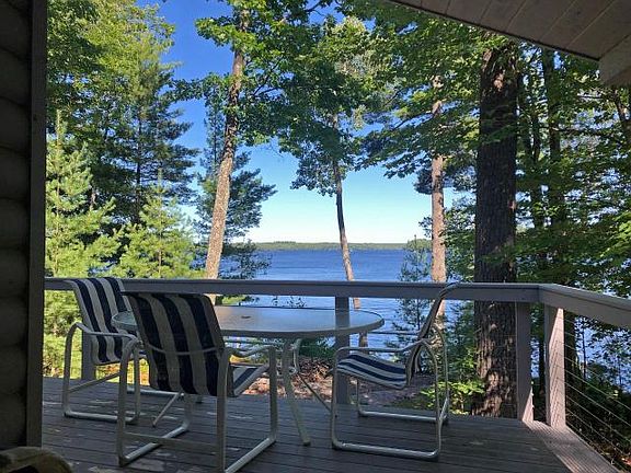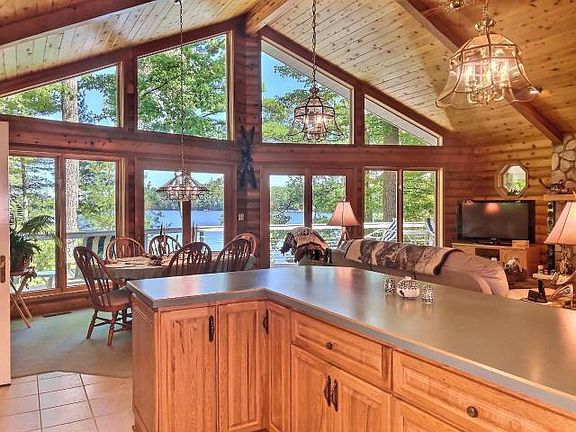 DAM LAKE / SUGAR CAMP CHAIN - This beautiful 3BD/3BA home with stone, wood-burning fireplace features everything one could want in a Northwoods lake house. With a gorgeous view of Dam Lake, you'll enjoy stunning sunrises, from the great room, the pier, your cedar deck (which has a stainless steel railing for better viewing), and sun room. The lakeside wall of windows provides amazing natural light in the great room - open, kitchen, living, & dining spaces. The first floor with en suite provides one-level living while extra bedrooms, family room w/ wood stove, and office space are downstairs. New high-efficiency forced air furnace to be installed before closing! A 24'x28' attached, heated garage and 24'x24' detached garage for storage. It's meticulously maintained inside and out, has a blacktop drive, attractive landscaping with paver brick walkway to steps and the pier. You can move right in!