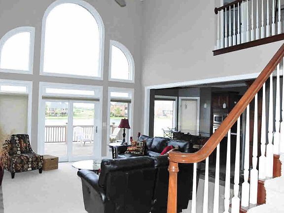 Custom Waterfront home in Eagle Pointe! What a setting!!Main floor master suite,office/den,formal diningrm,lovely open floor plan,huge deck on main level,full finished walk out lower level 1154 sq. ft., theater room, rec room, familyroom with bar area, full bath. Pre approved buyers only please. Sq ft includes lower level