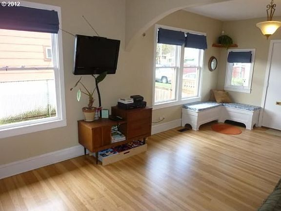 Super cute Bungalow. Nice, light open floor plan (many south-facing windows). Inviting front porch, fresh paint,hardwoods, builtins, large kitchen w/sizeable eating area w/builtins. 9-foot ceilings & basement with possibilities. Plenty of yard. Garden w/good sun exposure already started. Off-street parking. Room for RV parking?