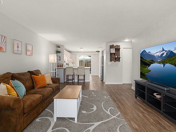 MOTIVATED SELLER! Great investment! Updated condo w/ ideal Tualatin location. This 826 sq ft, 2 bedroom, 1 bath w/ walk-in shower, one level home lives large. Enjoy an open floorplan, with luxury vinyl flooring throughout the kitchen, living room, utility room, and hallway. The kitchen is the perfect place to cook and entertain. All appliances: refrigerator, dishwasher, stove/oven, washer/dryer are newer and included in the sale. The two large bedrooms have wall-to-wall carpeting with large closets. In addition, there is a convenient utility space with a full-sized washer and dryer. A peaceful fenced patio is conveniently located off the kitchen. Detached garage and designated parking spot, assigned to the property. Private and quiet, yet also conveniently located near public transit, restaurants, shopping, and schools.