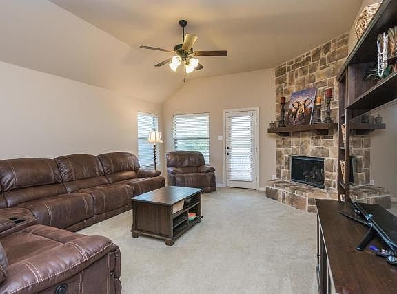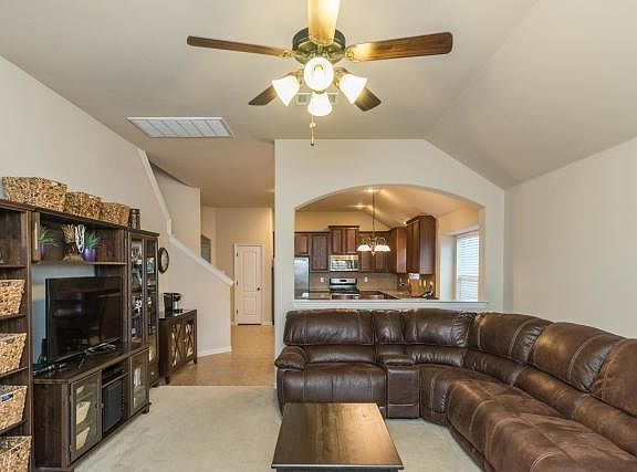 Beautiful 4 bedroom home featuring a large open concept island kitchen with granite countertops, recently installed laminate hardwood flooring and stainless steel Energy Star appliances. All bedrooms are downstairs along with 2 living and 2 dining areas and 24x16 gameroom upstairs. Radiant barrier and low-E windows, gas cooktop and gas log fireplace. Covered patio with room for a pool and no homes behind you! Community pool and playground.