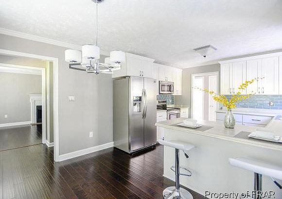 -Wow...this Precision Custom Home sits on 2.6 secluded acres just outside of the city limits. All the charm you would expect from a farm house with all the lovely custom features. Hardwood floors and custom ceramic tile grace the main living areas. Frieze carpets in bedrooms. Granite inspired formica tops with ogee edge, custom cabinets with crown, sleek glass backsplash and complete brand name stainless appliance package grace the gorgeous kitchen. Upgraded chrome fixtures throughout.