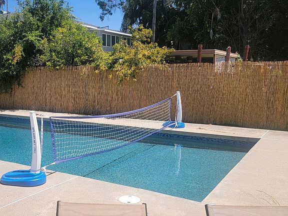 POOLSIDE detached studio for rent on large shared property in Lemon Grove. The studio has bright natural light, beautiful vinyl floors, a spacious bathroom, mini split AC, and a sizable storage area. It also has a private patio with a kitchen counter and sink. The refrigerator is inside the unit. The studio is on a shared property with fruit trees, a pebble bottom pool, hot tub, pergola and outdoor furniture for lounging or dining. This Lemon Grove property is next to a peaceful church and other large properties, has great breezes, and is up on a hill with beautiful sunsets. This 400 square foot unit is for a single tenant only. One well behaved pet allowed. There are two friendly dogs on the property in the two other units. It's a 3-5 minute walk to Elevated Cafe, the Pancake House, Giardino's Italian restaurant, and Zest wine bar - all fabulous spots! Utilities fee includes trash, water, SDGE, pool service, pest service and internet. One year lease required. THE UNIT IS AVAILABLE FOR MOVE IN JUNE 1st (with some flexibility for an earlier move in date in mid to late May if desired).