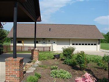 Custom built all brick Ranch home w/full basement on over 2 Acres!Lot backs up to Mill Hollow Park. Detached 3 Car Gar w/workshop attached that is heated & half bath! Covered Front porch w/brick half wall! Home offers 9' ceilings & crown molding throughout! Foyer has ceramic floors! Large Dining Rm w/wood floors. Private Living Rm. Unique floor plan...large Master Bedroom connects to 2nd bedroom through the bathroom &/or Closet. Family Rm has fireplace & large window to look through the 3 season rm & enjoy the views of your land! Kitchen has center island & breakfast nook! Appliances stay! 4th bedroom can be library/office. Huge unfinished basement. Home offers an enclosed 3 season room w/access to the back yard! Attached carport to the side entrances! Extra shed & enclosed building large enough to house an RV or Boat! Portion of the back yard is completely fenced in. This is Country Livings finest!