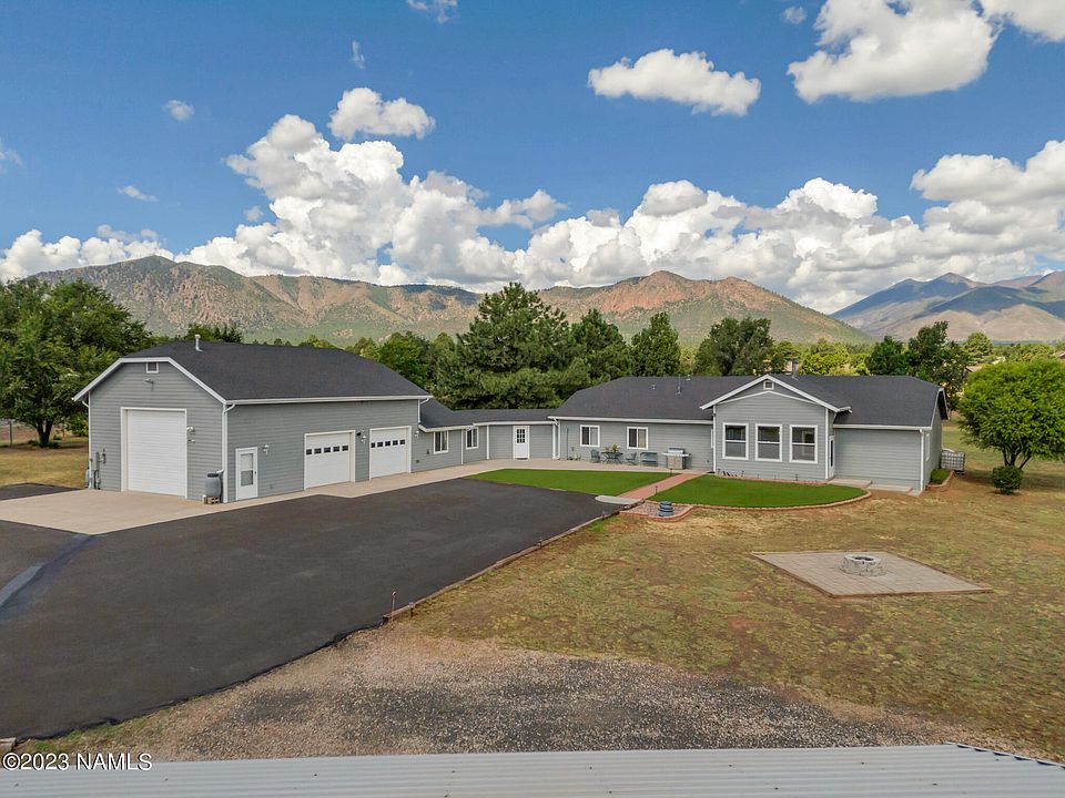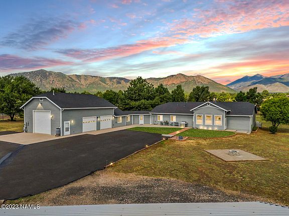 Your country estate awaits! Nestled within the pristine landscapes of Northern AZ, this estate offers a rare blend of functionality and natural beauty. Situated on a sprawling 2.29-acre coveted level lot, this property has apple & pear trees, a water catchment irrigation for the many lush trees that border the perimeter, fully fenced lot with closing gate, an RV garage with parking for 4 cars plus a bonus detached 2 car garage, owned solar panels, a completely enclosed breezeway that connects the main home with the RV garage and additional dwelling unit. The way the buildings wrap around lends to a private setting where you can truly enjoy the gorgeous elements Flagstaff has to offer year-round. The extensive concrete and asphalt driveway not only offers ample parking space but also adds a touch of sophistication to the property's aesthetic appeal. Don't miss your chance to own this remarkable piece of Northern AZ paradise.