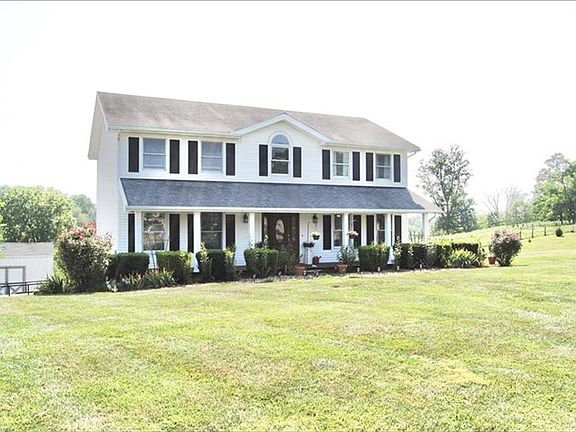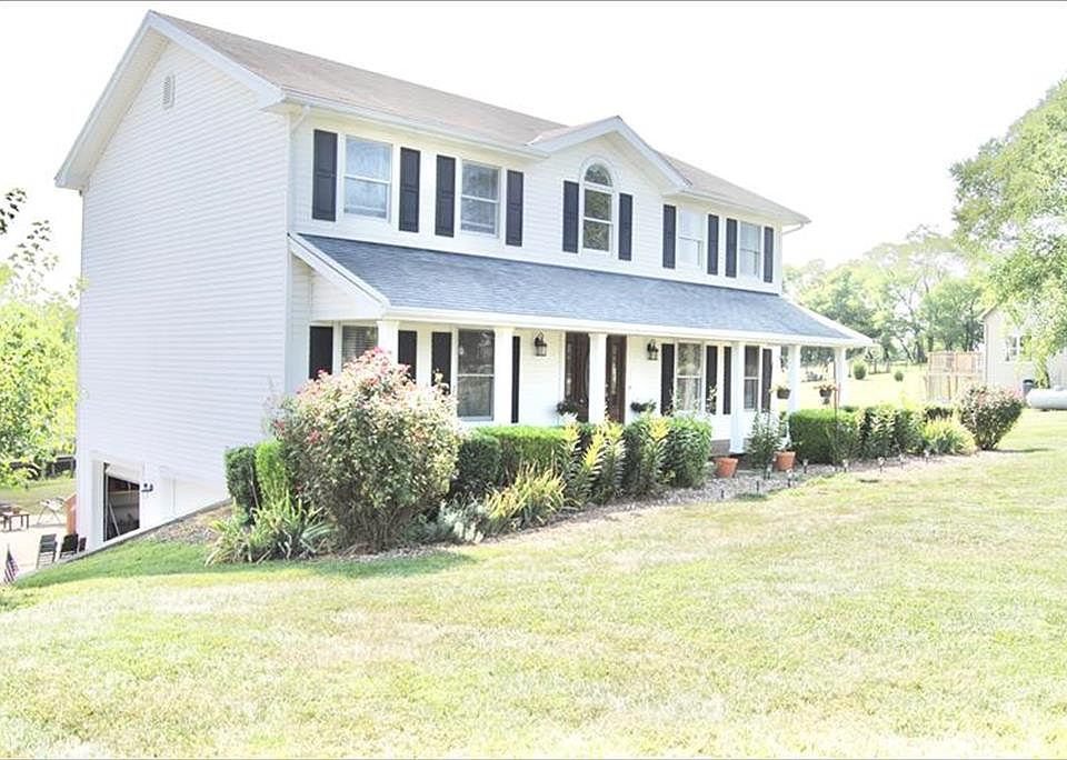 The main floor of this lovely home has hardwood floors throughout. The living room adjoins a very spacious family room with stylish rustic barn doors & a wood burning fireplace. The kitchen has fresh white cabinets with black granite countertops, a tile backsplash, a kitchen island, and stainless appliances which remain. There is also a nice sized dining room off the kitchen. The bedrooms are all located on the second floor. The master and second bedroom have wood flooring, and the remaining bedrooms have carpet. The master & hall baths have both been updated, have tile surrounds, and tile flooring. The walkout basement has a nice sized finished area that could be used as an additional family room, game room, etc. There is also a laundry room, and a 3rd updated full bath. There is a 25 x 9.5 ft covered deck with ceiling fans on the back of the home, which provides amazing views of the farm that backs up to the property