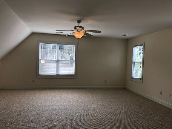 Welcome home! This lovely 3 bedroom, 3 bath home comes with a finished room over the garage (FROG) with a full bathroom, formal dining room, 2 car garage, open kitchen with granite countertops and gas fire place. The split floor plan offers additional privacy for the Master bedroom which is tucked in the back of the home, just off the casual living room with an extra high ceiling. The Master bedroom features a trey ceiling with fan, his and her walk-in closets, double vanities, corner spa tub and tiled stand up shower. Wood flooring abounds throughout the home except for the FROG. The kitchen offers a causal eat-in breakfast nook, bar top counter opening to the living room, stainless steel appliances and double under mount sink. The FROG could be used as a 4th bedroom,guest suite or