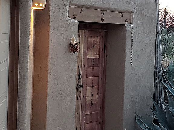 Rarely does a stellar 10 acre property defying comparison in a prime Eastside Rincon location become available. That rarity is this spectacular Home. With remarkable views, over 10 acres of exquisite grounds include a stunning back deck view of the Rincon Mtns. A beautiful pool accented with a step down Hot tub Deck with its own Kiva. Meandering pathways through a visual feast of seasonal blooms, enchanting landscaped vignettes, and Perfect outdoor entertaining options. The main and guest houses are exquisite examples of design,, with custom irreplaceable details throughout. Uncompromising craftsmanship and flawless taste combine to create the timeless classic character reminiscent of historic Santa Fe, modern ease and understated comfort. 2022 Built shop/Studio with large RV doorway with its own charm. New Complete Kitchen wrapped in Black Walnut Custom Cabinets.