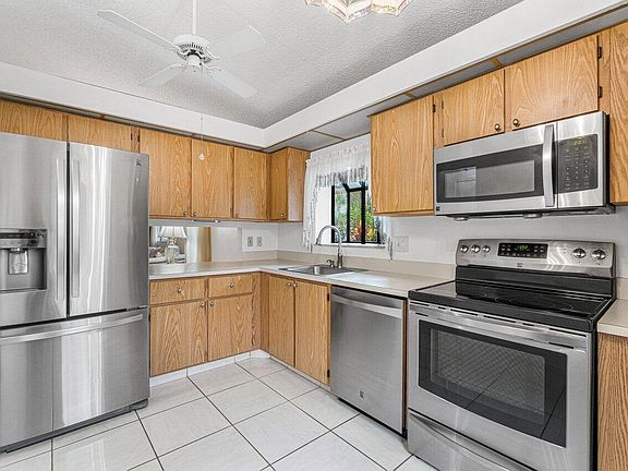 Situated on a gorgeous tree-lined street, this beautiful Champagne model features 2 bedrooms and 2 full baths. Eat-in kitchen complete with Kenmore Elite stainless steel appliances. Separate laundry room with full size washer, dryer & plenty of storage. Lovely Florida room with A/C overlooking private patio and garden. Whisper Walk community amenities include tennis, pickleball, shuffleboard, pool, clubhouse with exercise room, billiards, card room, library and more!