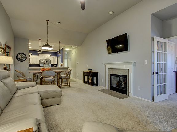 Lock & leave in gated French Creek Patio Homes. This 2 BR 2 BTH has fresh & airy decor with high ceilings & lots of natural light that floods this spacious open plan. Chef's kitchen with updated stainless appliances has breakfast bar & opens to dining area & a great room with fireplace that has space for computer nook. Main bedroom has large bath with separate tub/shower & French doors to a covered patio perfect for grilling or relaxing. Second bedroom/bath are private. Newer roof, HVAC, water heater.