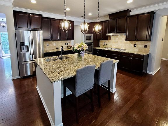 Discover this dreamy 6-bed, 4-bath Cary home, with an Apex address, with unbeatable access to parks, shops, RTP, Raleigh, and Holly Springs. 2 minute drive to future 540 on ramp on Bells Lake rd opening 4th quarter 2024).Envision enchanting sunsets from your west-facing back deck, complete with gazebo, fire-pit, and patio for cherished gatherings. Inside, find a fresh interior, grand foyer, and a master suite with tray ceilings, dual vanities, and custom closet. A versatile bedroom/office with a full bath awaits downstairs. The gourmet kitchen, with its island and gas range, invites culinary creativity. Upstairs, a dedicated movie room and spacious loft offer endless possibilities. With four additional bedrooms on the second floor, each sharing two separate full bathrooms, this home is not only spacious but also incredibly accommodating to your family's needs. This property seamlessly combines luxury, convenience, and comfort, making it the perfect place to call home. Don't miss out on the opportunity to make this house your own and start living your dream life in Cary!
