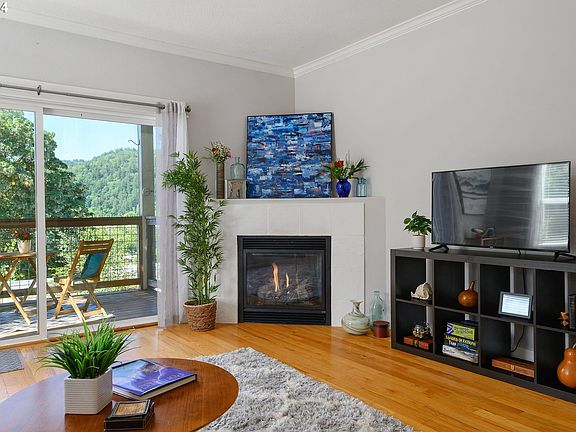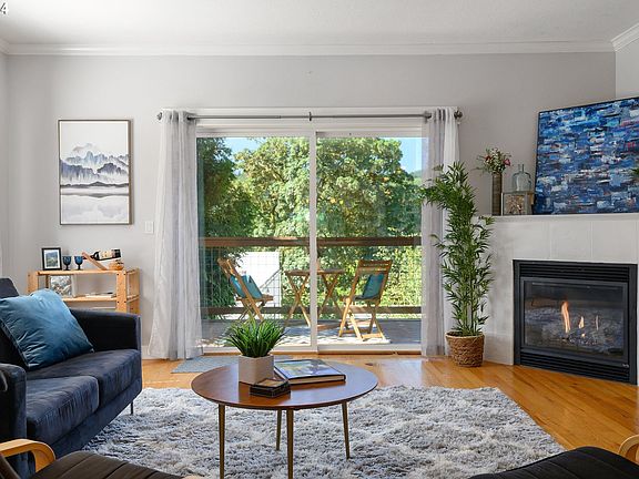 Enjoy stunning views of the St. Johns Bridge, Forest Park, and the Willamette River from your living room, kitchen, and deck. This one-level condo features two bedrooms and two full baths, with abundant natural light. The gourmet kitchen boasts beautiful slab granite countertops, a large island, and stainless steel appliances with a gas stove. The spacious living area, with oak hardwood floors and a gas fireplace, opens to a large covered deck through a sliding door.The primary bedroom includes a walk-in closet and a full bath, while the second bedroom has its own full bath accessible from the hallway. Pets are welcome in this four-unit complex. Located in the heart of St. Johns, you'll be close to restaurants, coffee shops, grocery stores, parks, and a community garden. Experience comfortable and convenient living in this vibrant yet peaceful neighborhood.