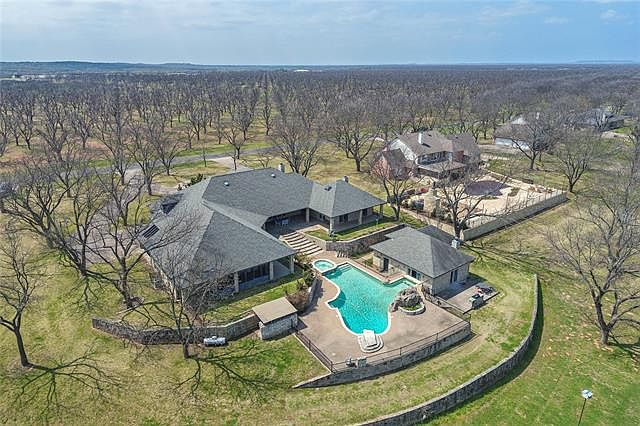 Exquisite & RARE Riverfront Estate with separate guest quarters & Horses permitted in Pecan Plantation. A Swing drive, & grand entry welcomes you into an Entertainers dream 5100 sq. ft open concept, boasting a theatre, wine cellar, exercise room, 2nd master, wood flooring & encompassing views throughout. A Gourmet eat-in kitchen is complemented by granite counters, abundant cabinetry, dbl oven, & wet bar. A home office with built-ins, sitting area, & fireplace. A Huge ensuite Master with luxurious bath, jetted tub, bidet, LG. walk-in closet & private screened patio. Relax around your poolside paradise with swim up bar, Grotto water feature, on several patios while overlooking the Brazos. Endless amenities.